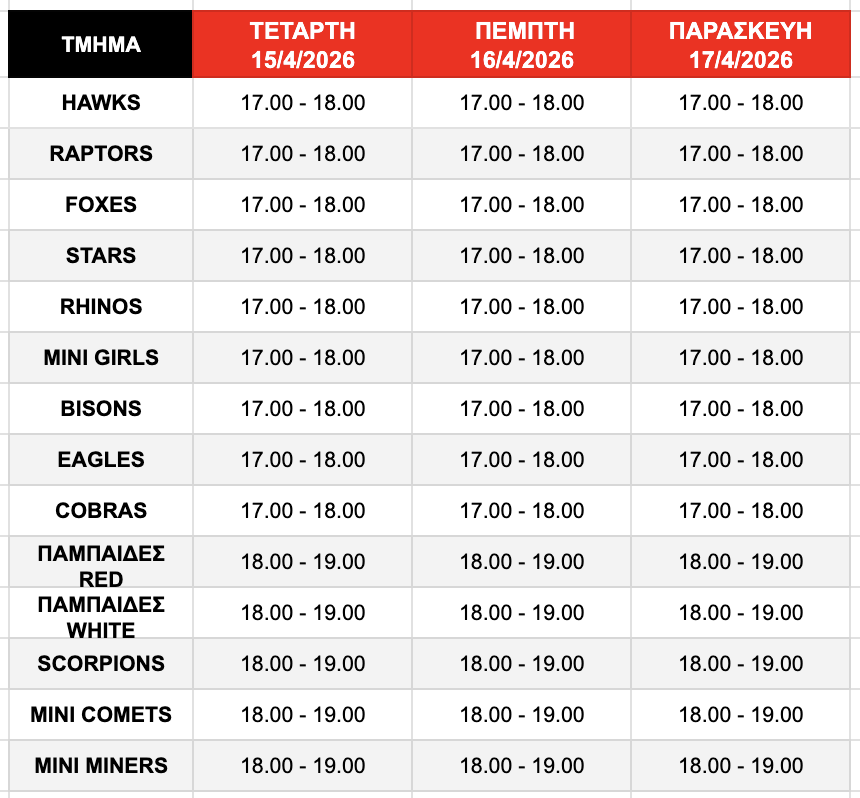 Πρόγραμμα Προπονήσεων Πάσχα και Δραστηριότητες